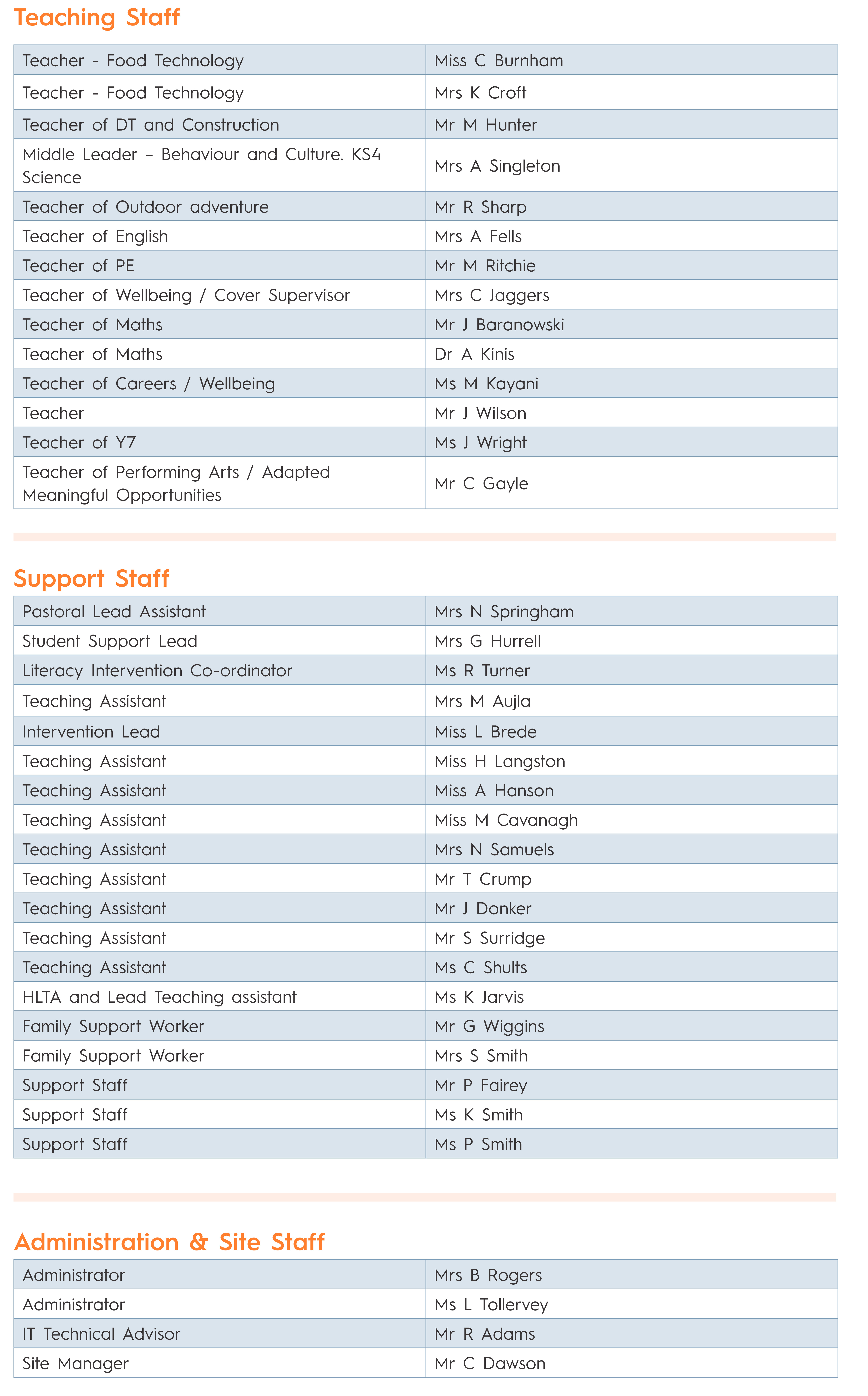 Teaching and Support Staff